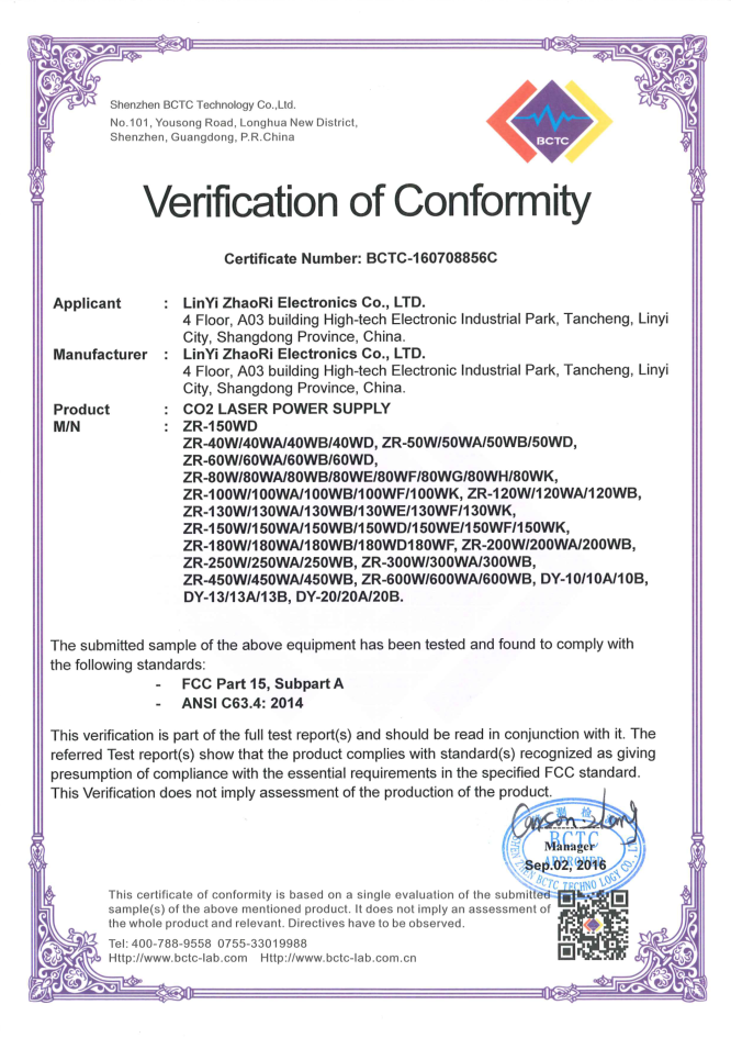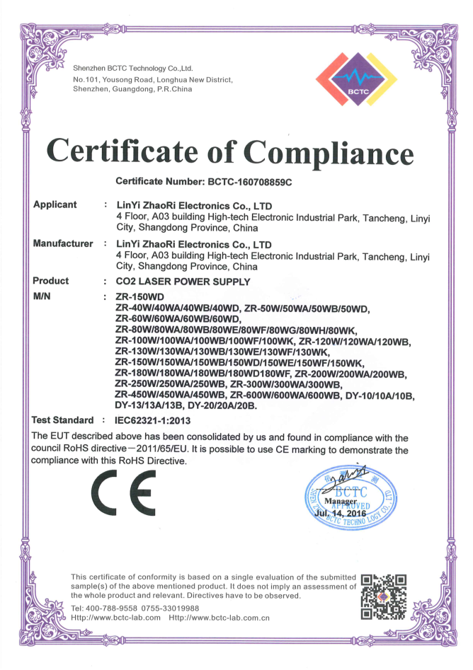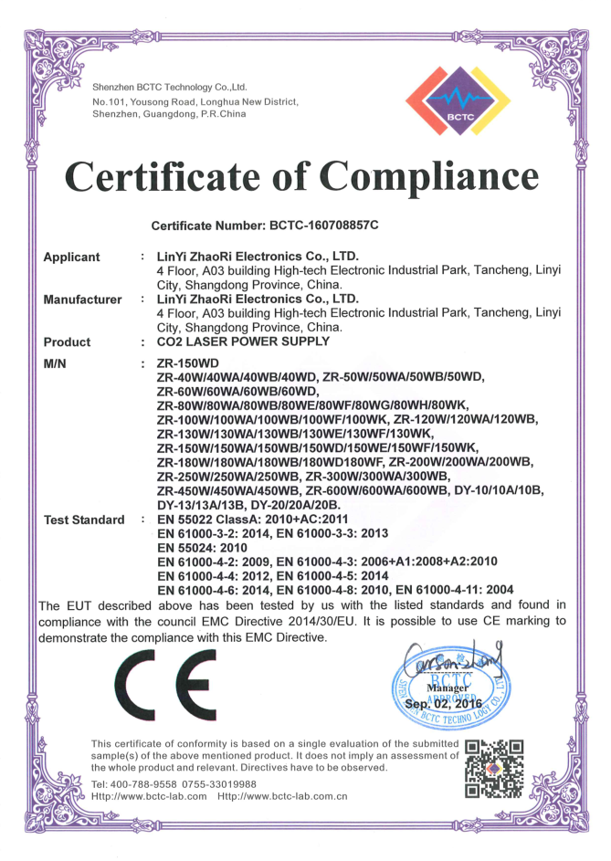 • 山東朝日電子有限公司是一家從事CO2激光電源研發(fā)、生產(chǎn)、銷售于一體的專業(yè)廠家,主要產(chǎn)品為40W/50W/60W/80W/100W/120W/130W/150W/200W/300W/400W二氧化碳激光電源。公司自2003年成立以來(lái),始終堅(jiān)持“以質(zhì)量求生存,靠信譽(yù)謀發(fā)展”的理念.公司擁有業(yè)界高素質(zhì)管理人才和技術(shù)精英,所有原材料都經(jīng)過(guò)嚴(yán)格細(xì)致的檢測(cè)檢驗(yàn),生產(chǎn)流程嚴(yán)格貫徹執(zhí)行ISO9001質(zhì)量管理體系。卓越的品質(zhì)、合理的價(jià)格和全體員工的不懈努力使我們的公司已穩(wěn)步走在行業(yè)的前列。